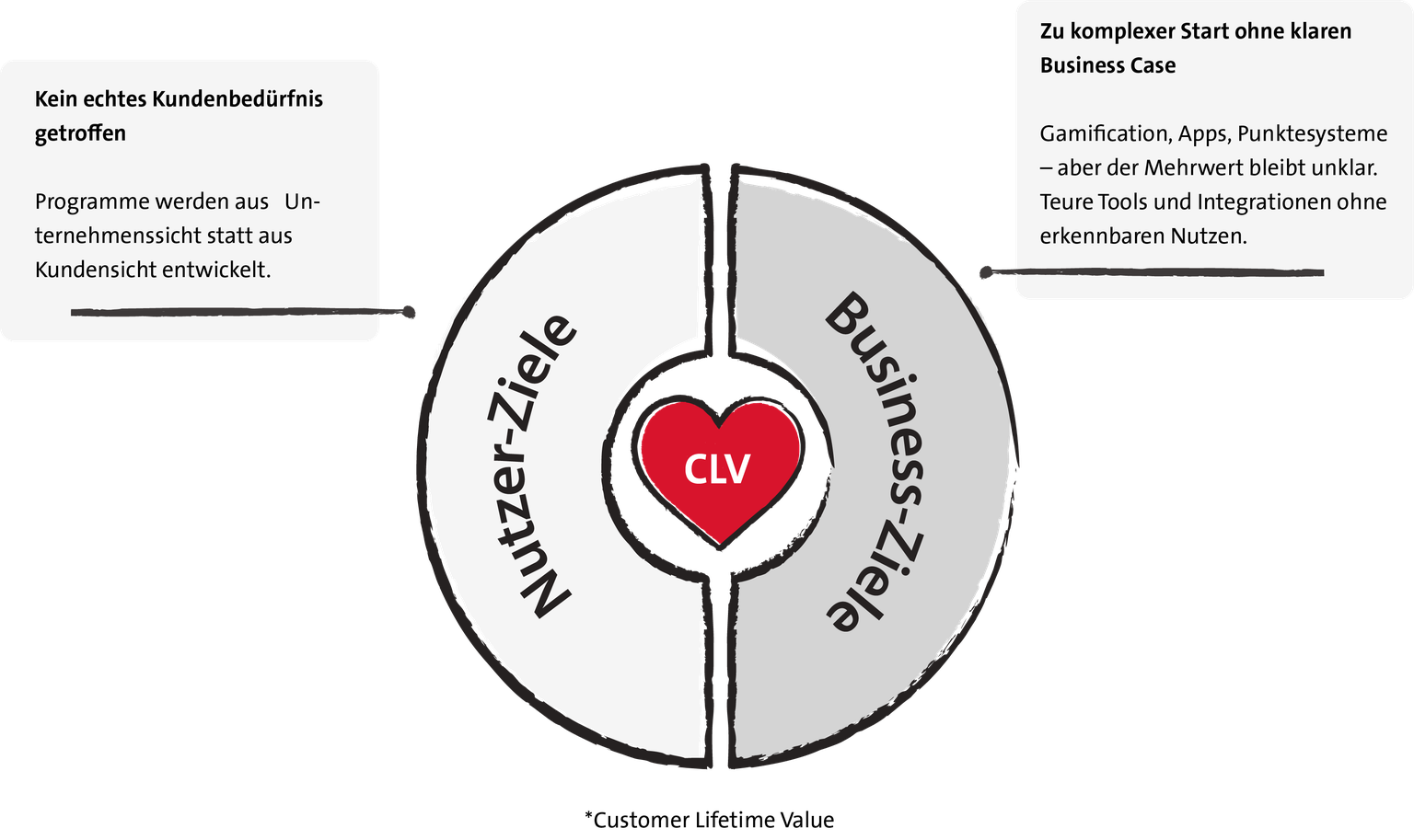 Nicht, weil Kund:innen grundsätzlich kein Interesse haben, sondern weil Programme zu komplex gedacht werden, am eigentlichen Kundenbedürfnis vorbeigehen oder ohne klaren Business Case ins Leben gerufen werden